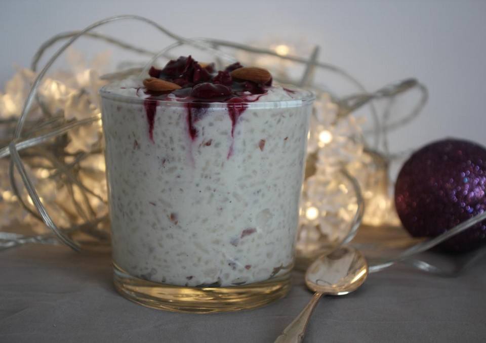 Dieser Mandelreis wird in der Dänemark traditionell zu Weihnachten serviert - inklusive einer verst...